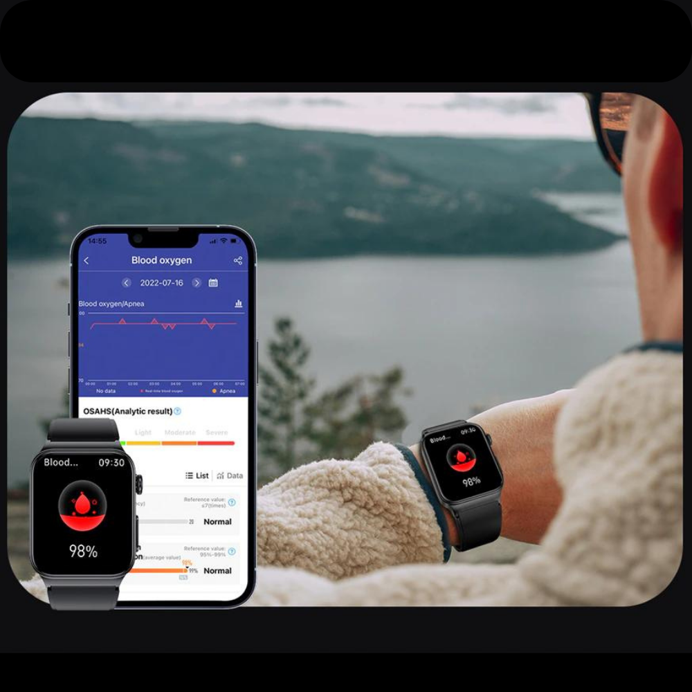 The PPG bio-tracking optical sensor can easily measure heart rate, blood oxygen, blood pressure, respiration rate and arrhythmia of atrial fibrillation with one button, so that you can know your health status anytime, anywhere.