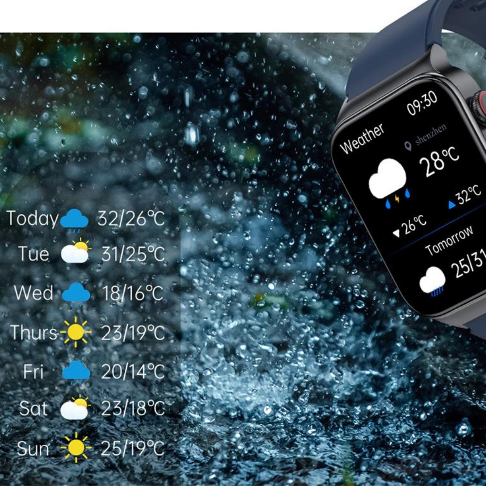 The smartwatch includes a built-in thermometer feature that constantly monitors body surface temperature for a full 24 hours. It generates a report on any changes in body temperature and provides an early warning in case of abnormal readings.